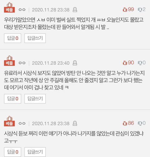 하 짹은 내가 안해서 모르겠고 여기 판에서는 이번 aaa상 관심 없었던 아미들이 태반임