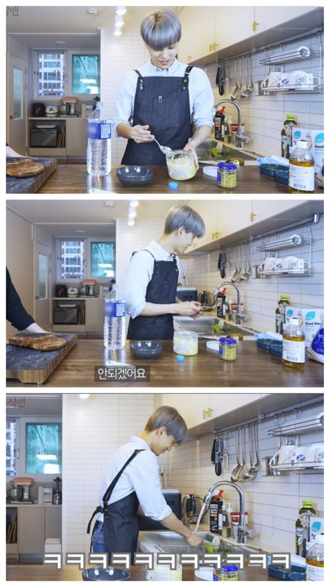 설탕 한스푼 넣고 마늘 푸려다가 머뭇거리는 카이..