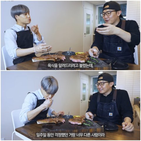 서로에게 진심인 육식맨과 카이가 만나서 들떠가지고 고기굽는 모습이 귀여워서ㅋㅋㅋㅋ 지금 엑소팬들과 육식맨 구독자들에게도 훈훈하게 반응 좋음ㅋㅋㅋㅋㅋ