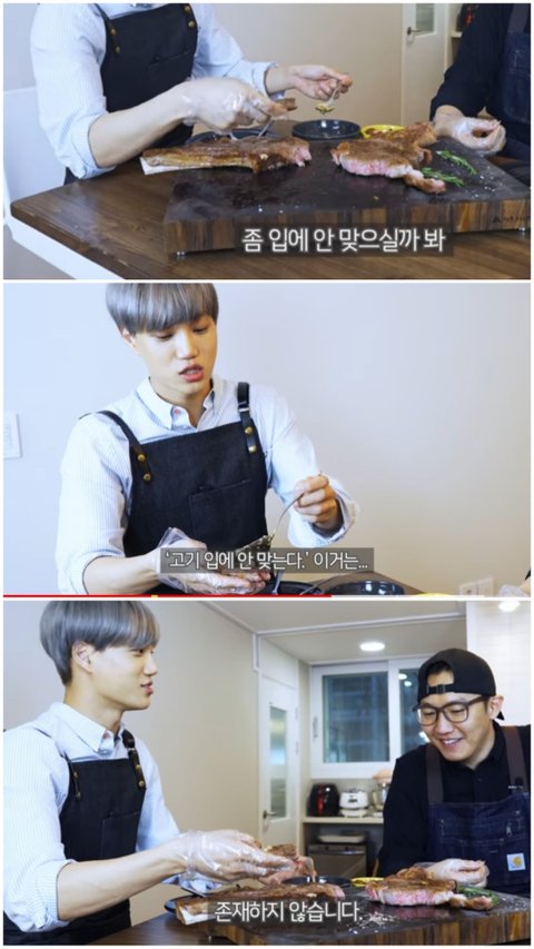 고기 맛있게 굽기가 취미인 카이는 유튜브 육식맨을 구독한대