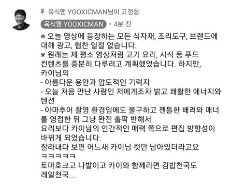 이번에 육식맨은 카이가 평소에도 즐겨보는 채널이라서