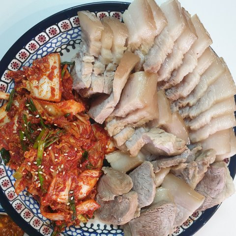 겉절이 담궜으니 수육 삶아야쥬~~ 저는 마트갔더니 앞다리살을 수육용으로 팔고계셔서