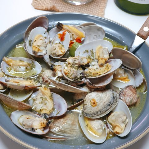 버터에 마늘이랑 페페론치노 휘리릭 볶고 바지락넣고 소주 넣구 물넣고 뚜껑덮고 끼리면 끝!