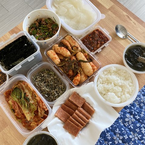 거하게 한상 차려봤습니다 (반찬뚜껑열고 미역국녹이고?)