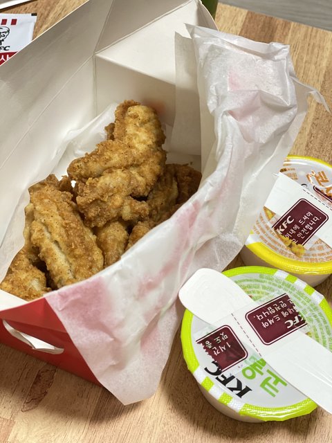 퇴근하고 치킨이 너무 먹고싶은데 혼자 시켜먹기 부담스러워서 KFC블랙라벨 5조각이랑 콘샐러드 코울슬로까지 사왔지요 히히 ( 오늘도 욕심많은 저입니다..)