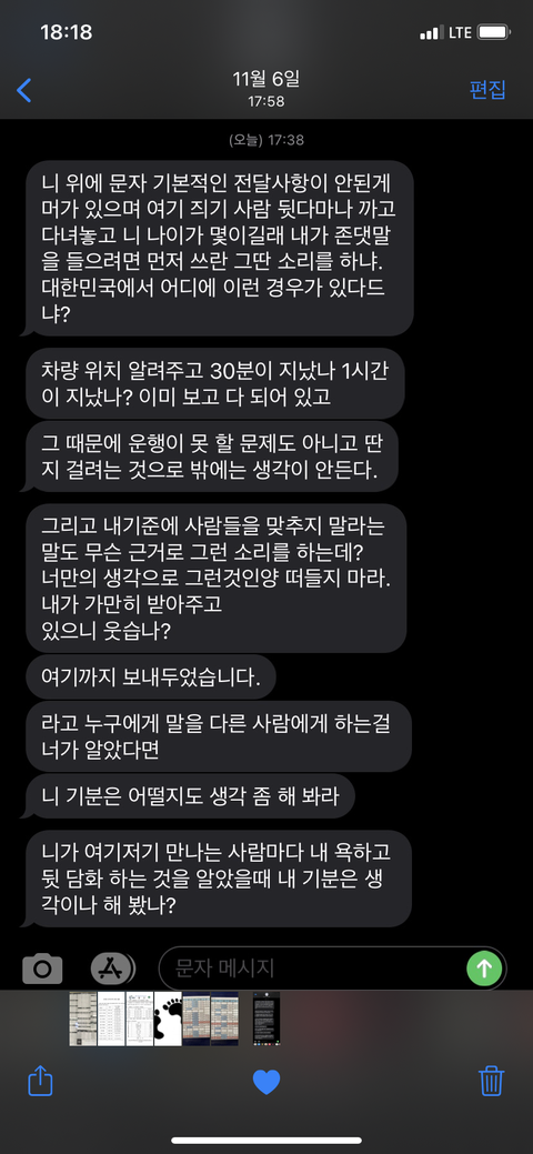 상황설명을 하자면 직장동료이고 제가 받은 문자입니다