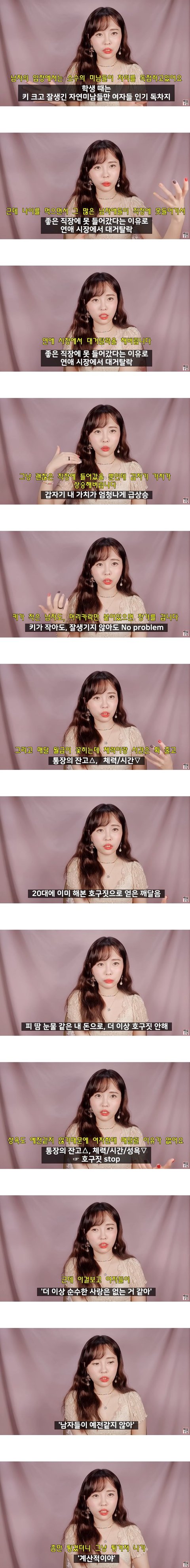 뭐래는거야.. 헛소리를 장황하게도 하네. 그럼 남자들은 여자 경제력 안보냐?ㅋㅋㅋ 요새 누가 얼굴만보고 결혼한다고.. 그리고 여자는 그동안에 피땀눈물 흘려서 이뤄놓은거 하나도 없게?ㅋㅋㅋㅋ
