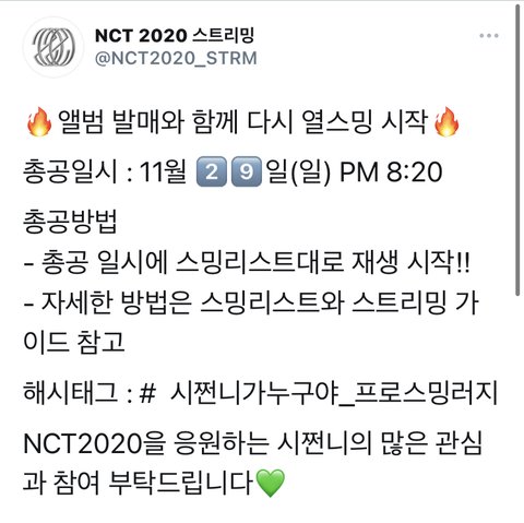 스밍 총공 까먹지 마