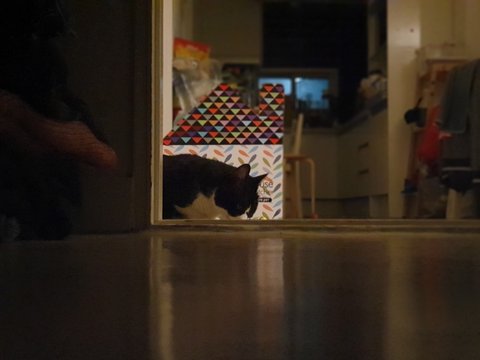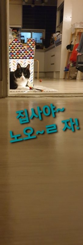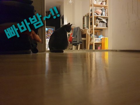 저녁 잘 드시고 엉아와 햄볶던 으르신... 급 집사의 침실앞에 납시어 굳이 저렇게...ㅠㅠ