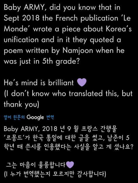 위의 내용 출처 https://twitter.com/omermeroz/status/1332871879611338752?s=19 남준이의 시