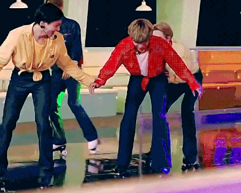 롤러장에서 걸음마 하는 뷔 잡아주는 지민이랑 정국이 표정봐 ㅋㅋ 진짜 사랑스러워...