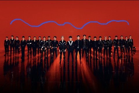 하긴..23명인데 브이자로 하면 뒷 멤버는 얼굴 콩알딱지 만큼 보이겠구나...