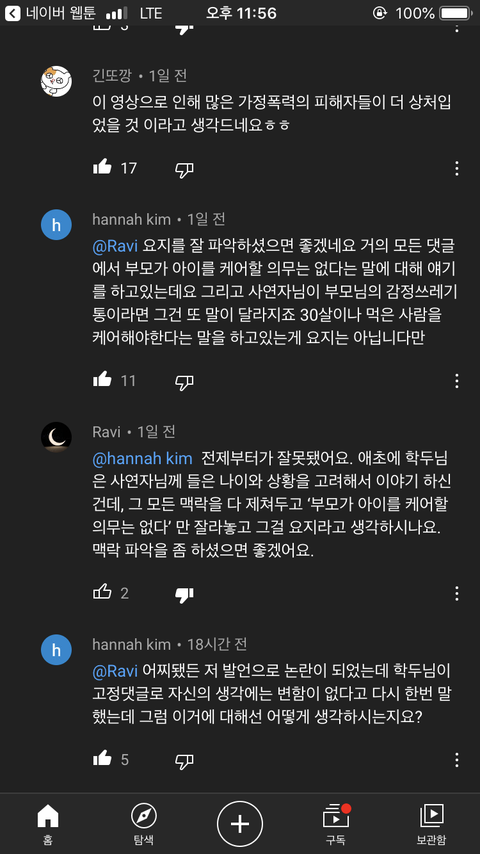 그래서 댓글들 읽어보는데 나만 그런 거 아니더라... 그냥 영상만 보면 오해구나 하고 넘어갈 수 있는데 고정댓글에 자기 말 바꿀 생각 없다고 케어 의무 아니라고 한 번 더 써놓으셔서... 줫나 마음 착잡해짐 ㅋㅋ 잘 보던 채널인데