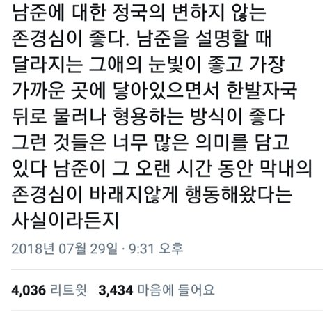 이후로 7년간 정국이 꼽은 본인이 가장 존경하는 사람 = RM