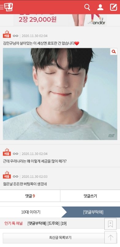 뭔 상황이냐믄 매번 로또광고하면서 매크로돌리고 톡선보내는 애가 있는데 (판녀면 모를수가 없지) 얘가 베플조작하고 있다가 김민규빌런도 로또글에 댓글조작해서 베댓 하나 뺏어감ㅋㅋㅋㅋ 다른애도 아니고 로또년 베댓뺏을 생각한게 조카웃기기만 함