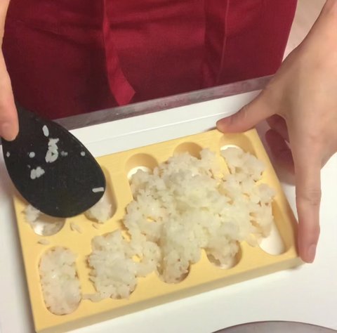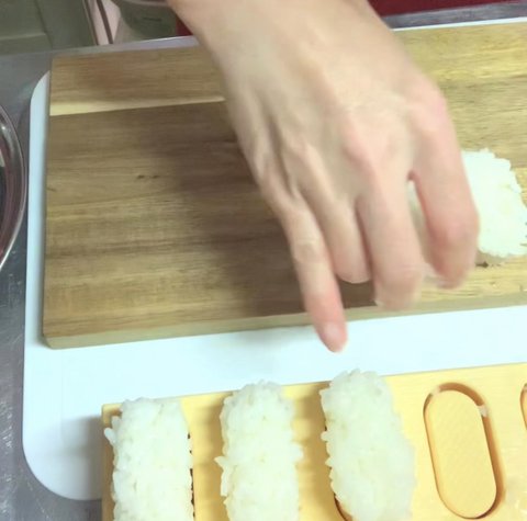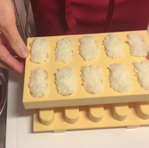 나는 모두 실행해 보고 그냥 초밥틀을 주문해서 몇년째 잘 사용하고 있다.단촉물에 맛을 낸 밥을 초밥틀에 채워 넣는다.그리곤 채워진 밥덩이들을 꾸욱~ 눌러 빼준다.