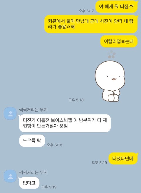 예전에 우리 엔터에 상주할때 어떤 ㅇㄱㄹ가 정쟨 대기실에 햬찭이 놀러갔다고 구라깠는데 어떤애가 자기 해재진심녀한테 나댔다가 혼났다고 올림 ㅅㅂㅋㅋㅋㅋ
