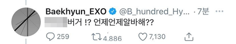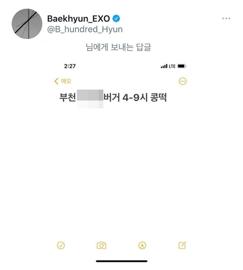 엑소 백현에게 멘션 보낸 팬