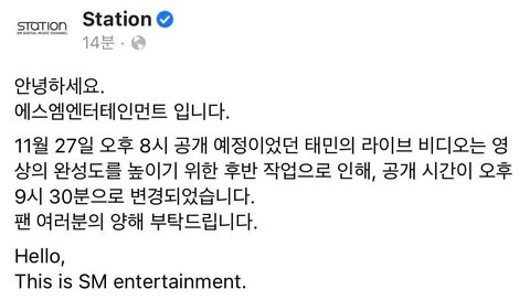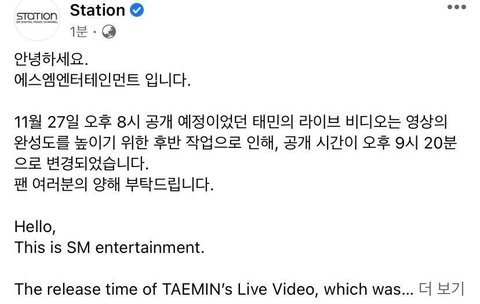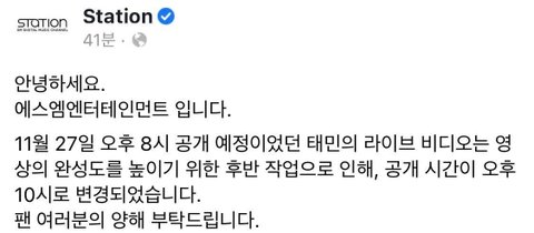 8시에 올라오기로 했었던 태민 슴스테 라이브 비디오