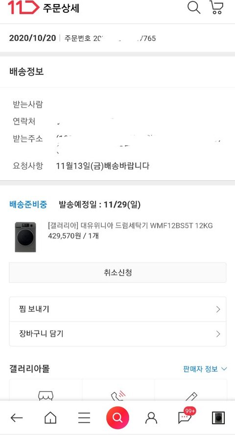 며칠후 혹시나하여 구매정보 확인해보니 여전히 11월29일 배송예정..