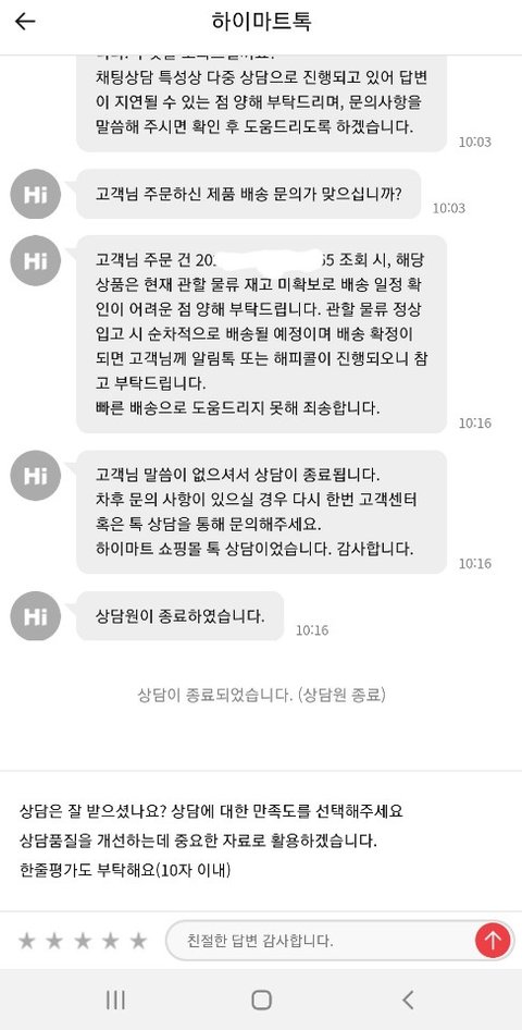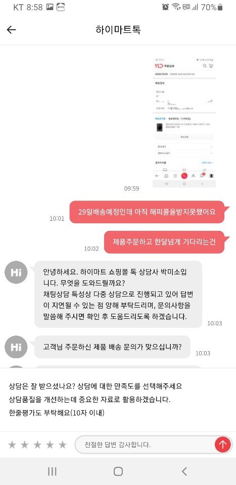 입고지연으로 순차발송이라는 똑같은 답변들만 했습니다.