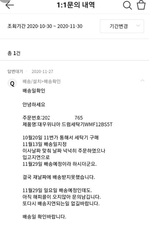 결국 11월29일 배송받지 못했습니다.