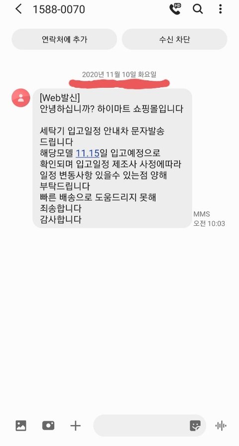 세탁기는 설치 가전제품인데 해피콜이 오지않아 구매정보 확인해보니