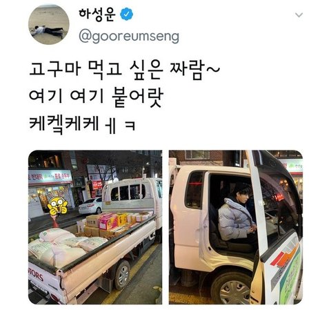이번에도 트럭타고 직접 노나주러 다닌건가봐ㅋㅋㅋ