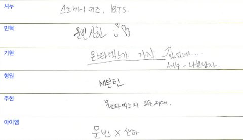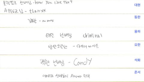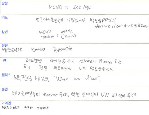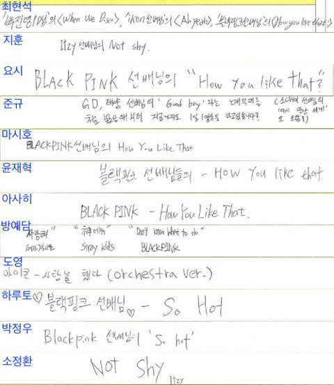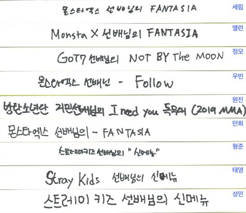 올해 8월부터 추가된 질문 '최근 멋있다고 생각한 아이돌 무대는'