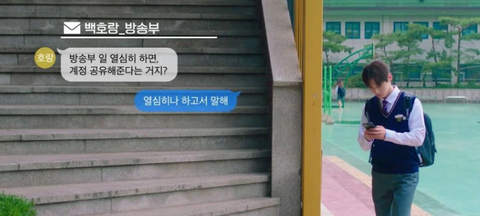 고민하는 듯 하더니 학교 방송부에 메시지를 보냄
