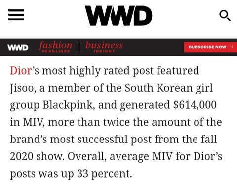 지수는 가장 성공적인 포스트의 2배가 넘는 값인 61만 4000달러를 MIV에서 창출했으며, 전체적으로 디올의 평균 MIV는 33% 상승했다 ㅋㅋㅋ