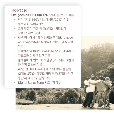 저번 다이너마이트(영어싱글곡) 핫백 1위 후 한국어 가사 최초로 핫백 1위했어 라디오 수치가 낮았음에도 불구하고 1위한거 정말 자랑스럽다ㅠㅠㅠㅠ