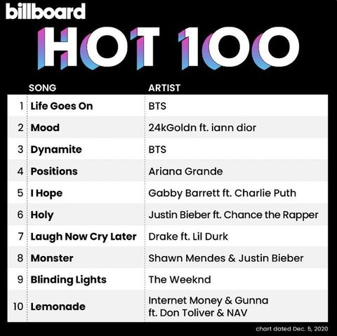 빌보드 핫백 1위 3위 핫200 1위 그래미 노미