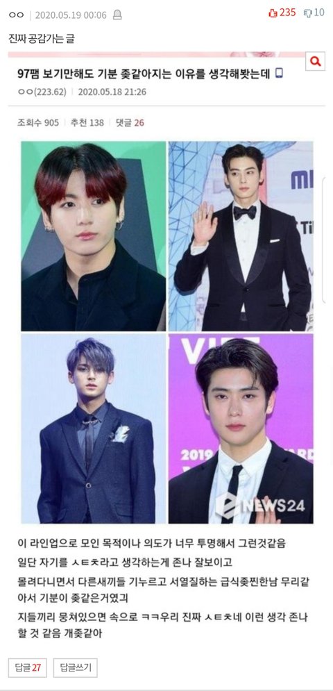 진짜 97즈는 왜까인거임?? 디패도 소름돋아 ㅋㅋㅋ아이돌 패는데 미쳤나 ㅋㅋ