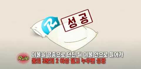 베개는 안 베도 되며 머리는 보여도 발은 안 보여야 인정이라고 함