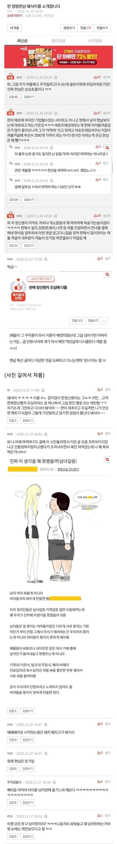 여자로 빙의해서 판녀들에게 덮어씌우기는 물론 추천 조작질까지 하는 정병 한남 “돼식이”