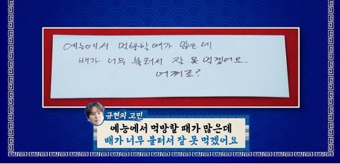 규현처럼 입이 엄청 짧고 위 작은 사람들은 음식 프로 나오는 것도 진짜 고민되겠다