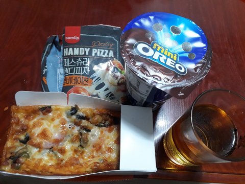 피자+미니오레오초코+소맥