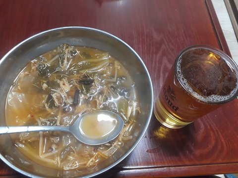 버스타고 사 온 닭개장+소맥