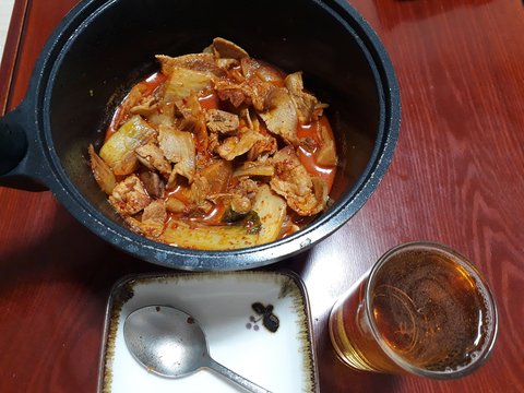 직접만든 돼지김치찌개+소맥