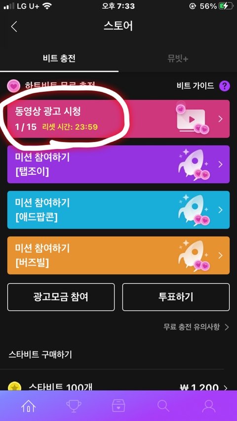 5. 광고를 15번 봄 (광고 하나에 3비트씩, 15개 보면 45비트 받을 수 있음. 나는 매일 해서 이천개 모아서 애들한테 몰빵함)