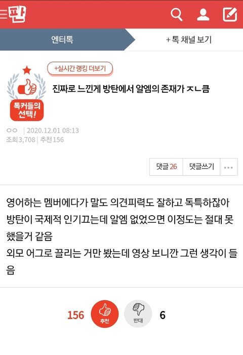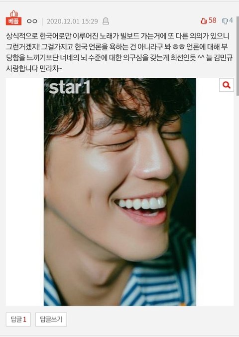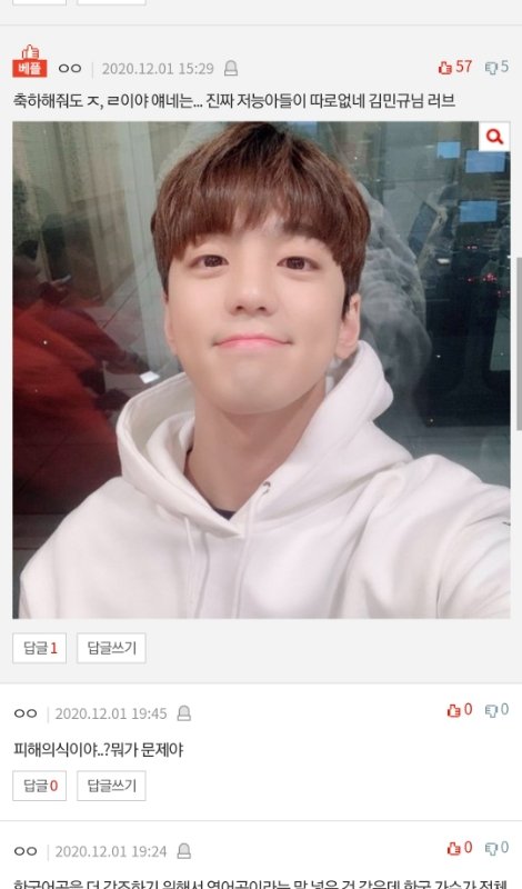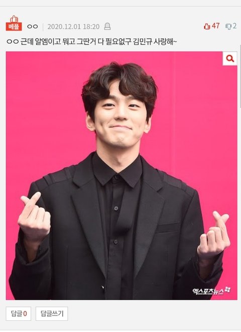 10대판 판녀인데 엔터 가끔 간잽하다가 댓남길게 방탄팬들아 너네 지금 기분상한거 알겠는데 김민규빌런만 욕하고 저 배우는 까내리지마 쟤 빌런 단톡방따로 있고 김민규 욕하면 단체로 계정 해킹해서 아이피로 ㄴㅇㅂ나 ㄱㄱ 테러하는 애들임 판에 좀 서치만해도 해킹사례 나오니까 조심해 빌런만 욕하셈...ㅠ