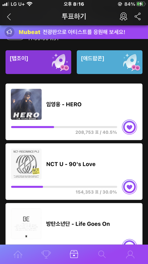 뮤빗 투표 안 한 사람 ㄱㄱ