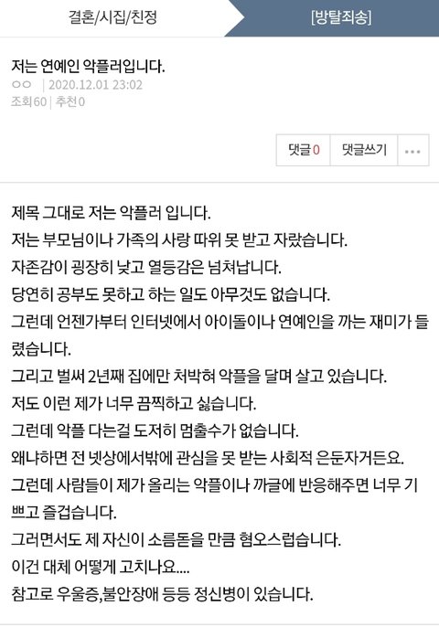 이런 사람들이 악플러짓 하는구나