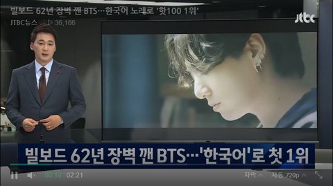 62년 전 이 차트가 생긴 이래, 한국어로 된 노래가 정상을 차지한 건 처음입니다.8년 전, 싸이의 '강남스타일'도 이 차트에선 7주 동안 2위에 머물러야 했습니다.