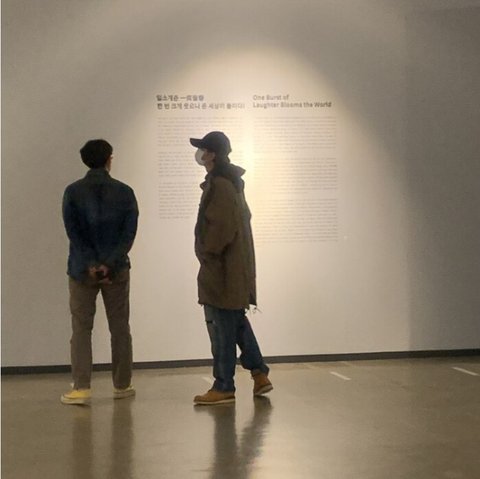 세계적인 케이팝 스타 방탄소년단(BTS)의 리더 아르엠(RM·본명 김남준·26)이 한겨레신문사가 국내 최초로 마련한 중국 현대 미술가 유에민쥔(58)의 개인전 ‘유에민쥔: 한 시대를 웃다’ 전시장을 찾았다.