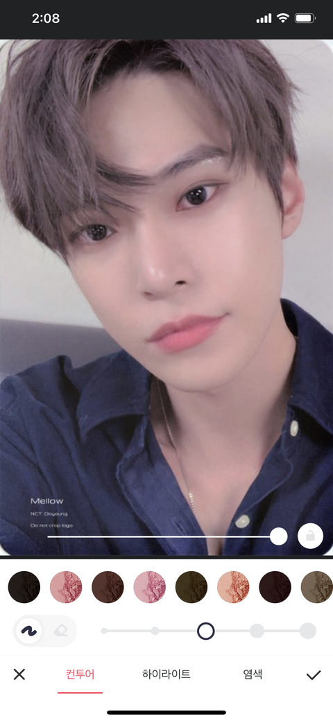 컨투어 들어가면 애굣살 그림자도 넣을 수 있고 아라,눈썹까지 자기가 그림처럼 그릴 수 있음 투명도 조절도 가능하고 염색기능도 있는데 ㅂㄹ티 안 나