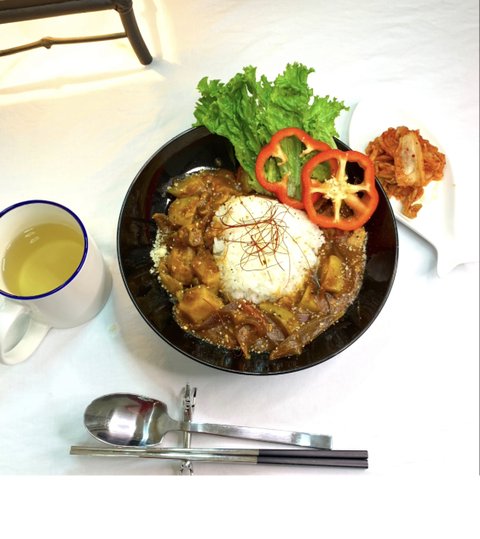 매콤한 향에 재채기가 날 정도로 매운 카레가 고구마와 어우러져 맛있다.