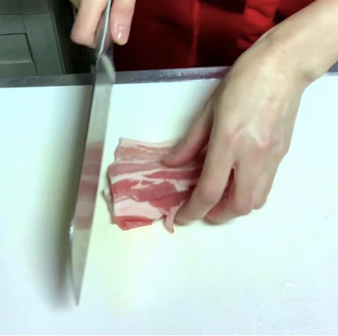 야채가 렌지에서 익는 동안 고기를 잘라주고