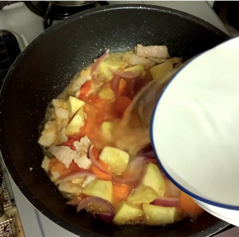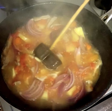 카레덩이가 모두 풀어지면 걸죽해질 때까지 타지않게 저어가며 졸여준다. 밑간은 집에 있는 다시 또는 간장등으로 한다.